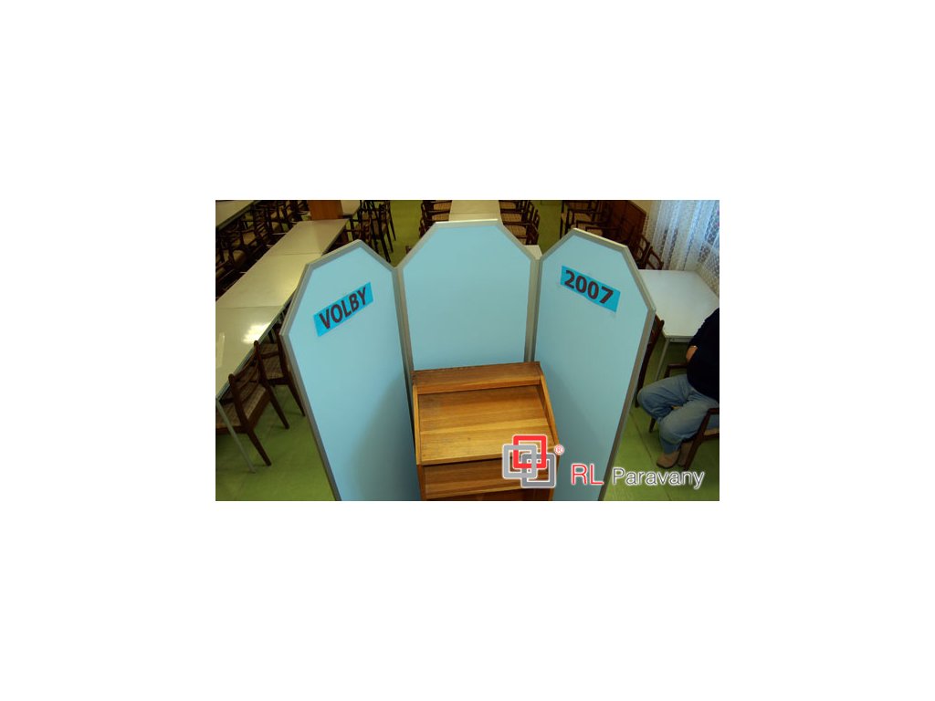 Speciální nabídkou naší firmy, hlavně pro městská zastupitelstva, je multifunkční paravan. Jedná se trojkřídlovou konstrukci, kterou lze používat jako mobilní informační panel např. na chodbách a zároveň z ní velice snadno sestavit funkční volební kabinku.